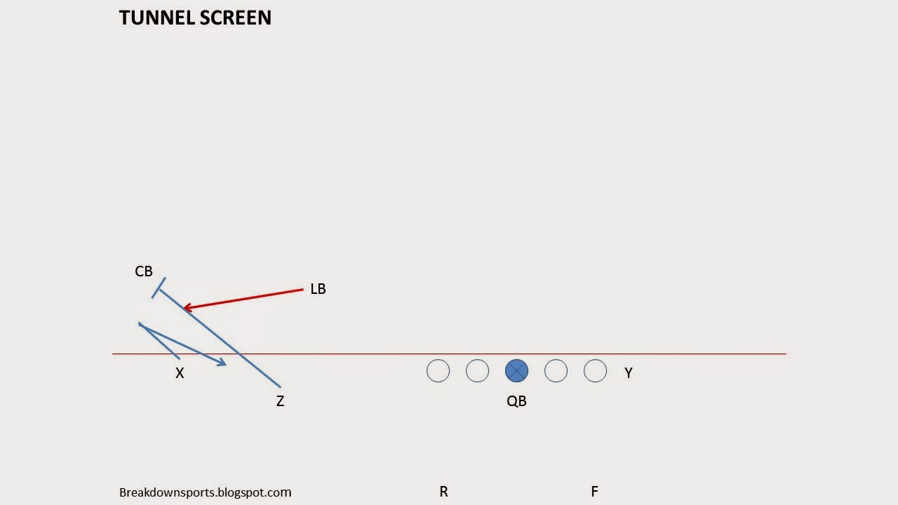 Similar to the Drive concept, you will remember from the Drag and Follow concept (aka "Drive and Chase") and is the drag route from the X-WR. Because it's coming from the outside, often times the LBs are run deep by the slot going vertical. Likewise, if the LBs see the drag route coming, the intermediate depth behind them comes open for the slot to fill. If safeties are aggressive coming down in coverage, the slot can get over top of them as well.